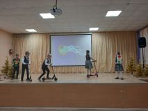 Также перед первоклассниками выступила команда 4б класса (классный руководитель Светлана Сергеевна Матлахова), призер окружного конкурса «Главная дорога», которая в игровой форме рассказала о правилах поведения на дороге.