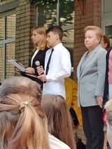 1 сентября 2021 года выдалось ясным. Ученики 1-х, 5-х и 11-х классов вместе с классными руководителями, администрацией школы и родителями собрались на торжественную линейку «Здравствуй, школа!». С приветственным словом выступила Людмила Ивановна Тихонова, директор школы.