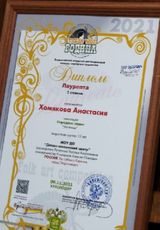 Ученица 6г класса Хомякова Анастасия стала лауреатом III степени Всероссийского открытого дистанционного конкурса народного творчества "Тихая моя Родина" в номинации "народный вокал (соло)".