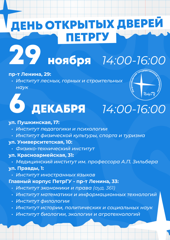 Петрозаводский государственный университет приглашает на день открытых дверей.
