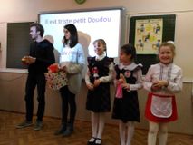 В течение двух дней наша школа встречала делегацию в своих стенах. По традиции была организована богатая программа встречи, которая началась в кабинете директора школы Л.И. Тихоновой. В программе были посещение начальной школы, совместные уроки в старших классах с углубленным изучением французского языка. Для гостей была организована виртуальная экскурсия по Карелии, экскурсия в музей «Карельская изба». Ученики школы подготовили концерт, в котором приняли участие фольклорные коллективы «Петровская Слобода», «Рэгтайм», танцевальный коллектив колледжа культуры. Ребята участвовали в увлекательных спортивных играх, организованных учителями физической культуры школы. В завершение программы прошла товарищеская игра по волейболу. Преподаватели и лицеисты остались довольны этими днями, проведенными в дружеской обстановке общения и понимания. Нашим гостям были вручены памятные дипломы и подарки с символикой школы.